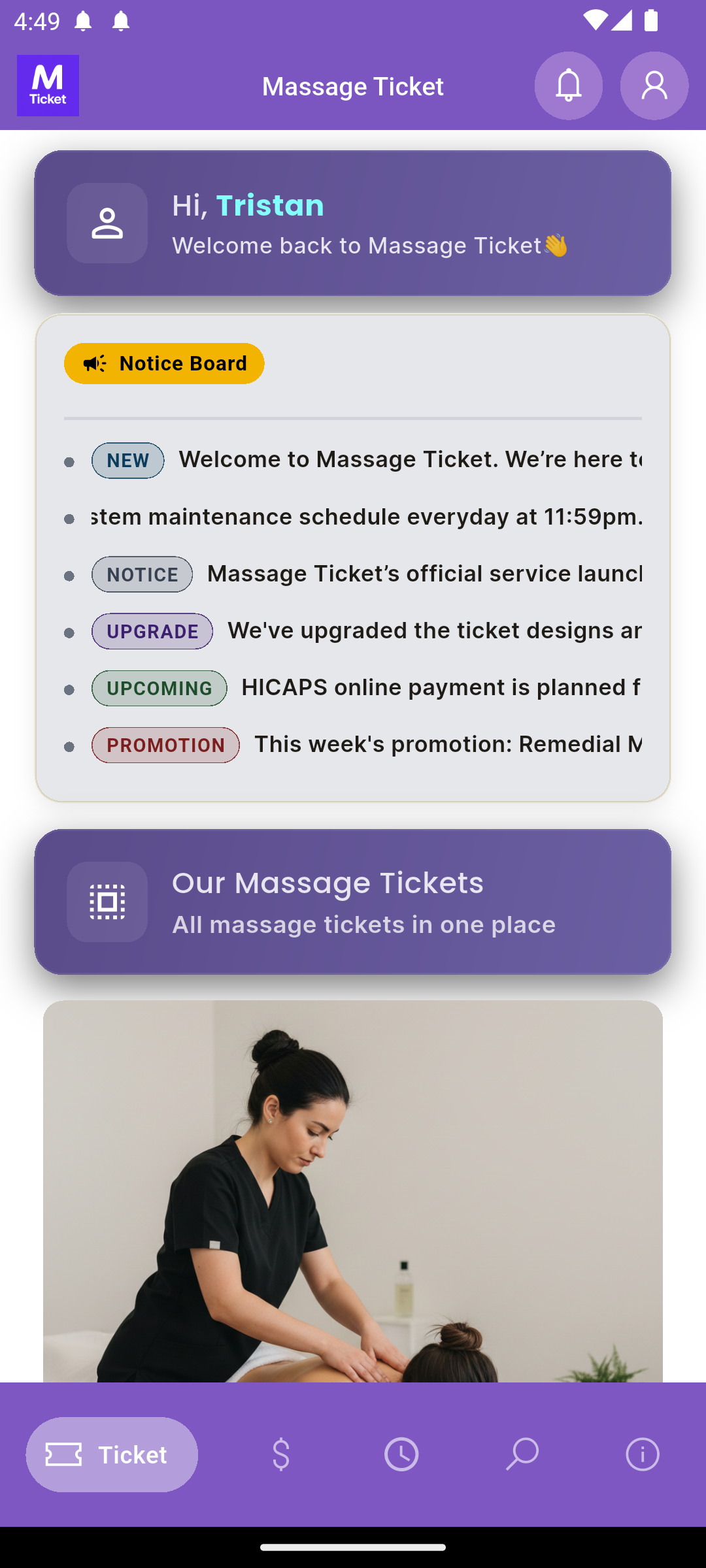 Massage Ticket account.