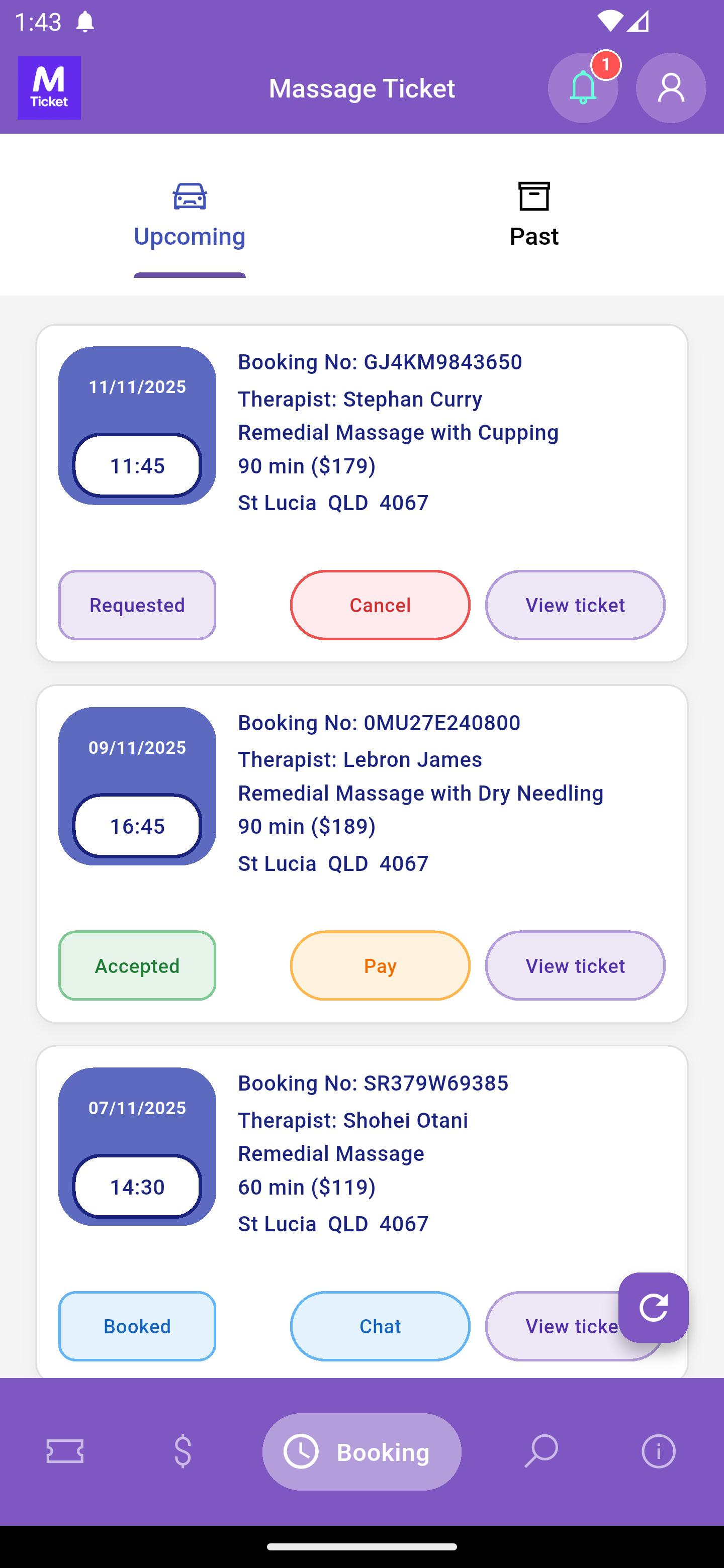 Choose a massage ticket and submit a booking request.